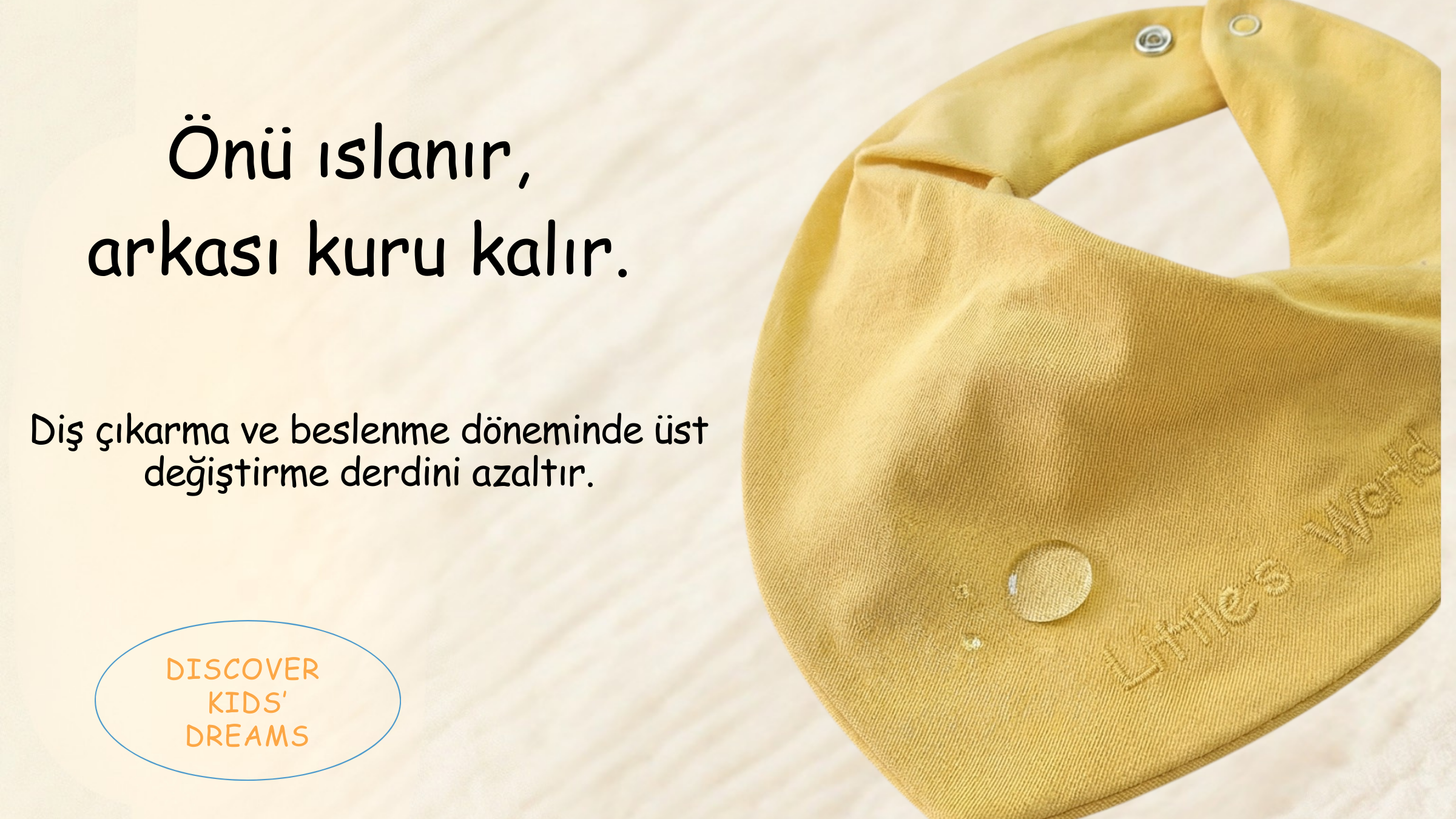 3'lü Premium Su Geçirmez Bandana Önlük Set | Cilt Dostu Penye & YKK Çıtçıt Little's World Nakışlı Lacivert,Yeşil,Ekru